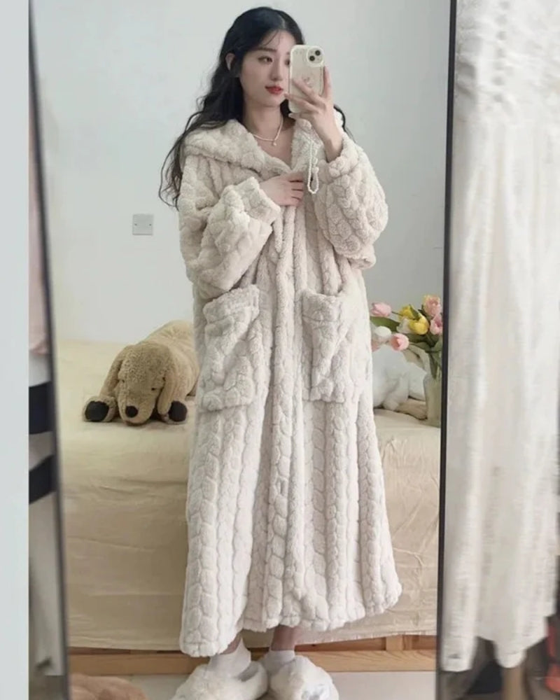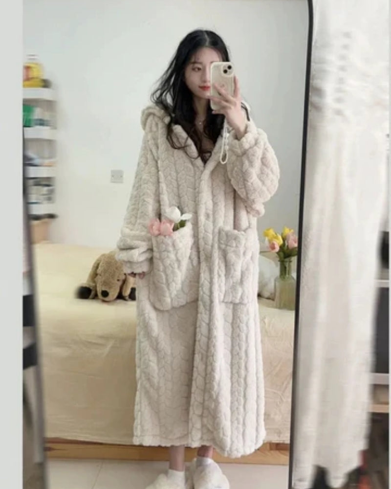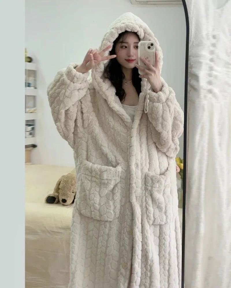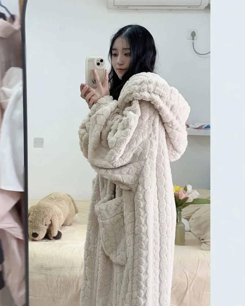 Bademantel mit Kapuze für Frauen - Warmer Bademantel in voller Länge