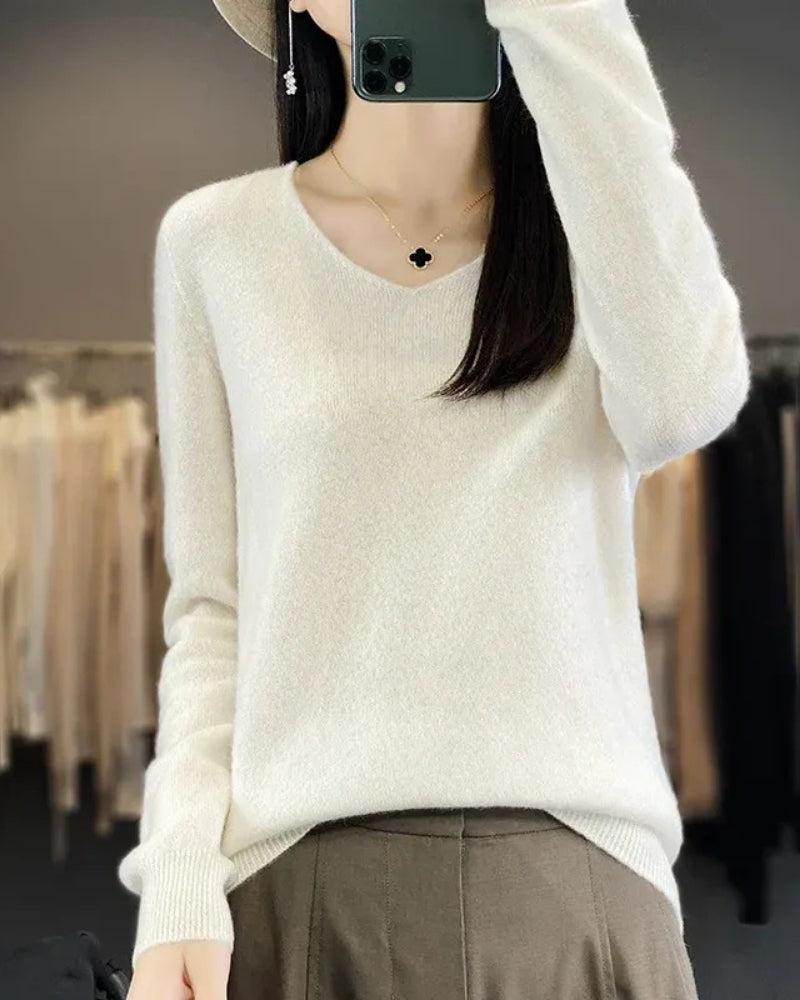 Damen V-Neck Wollpullover – Pullover aus 100% Merinowolle für Winter und Herbst