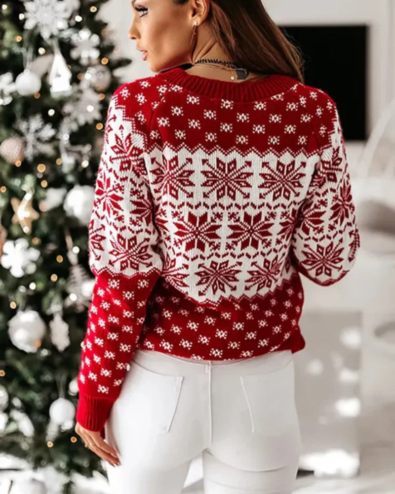 WEIHNACHTSPULLOVER DAMEN – ROT-WEISSES DESIGN MIT SCHNEEFLOCKENMUSTER