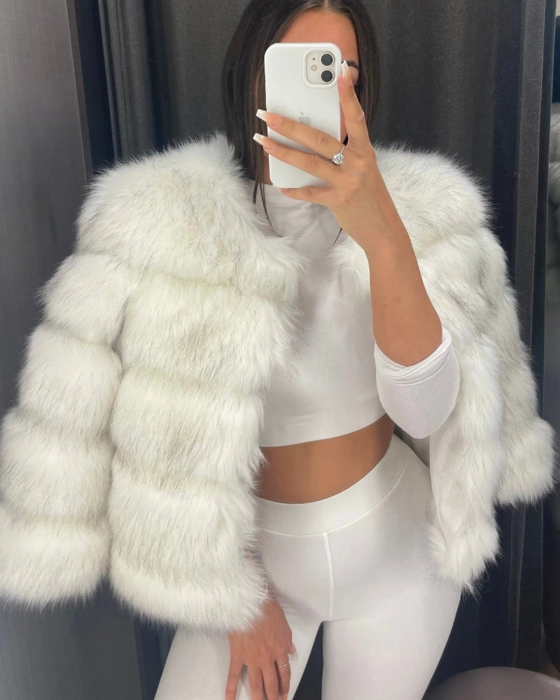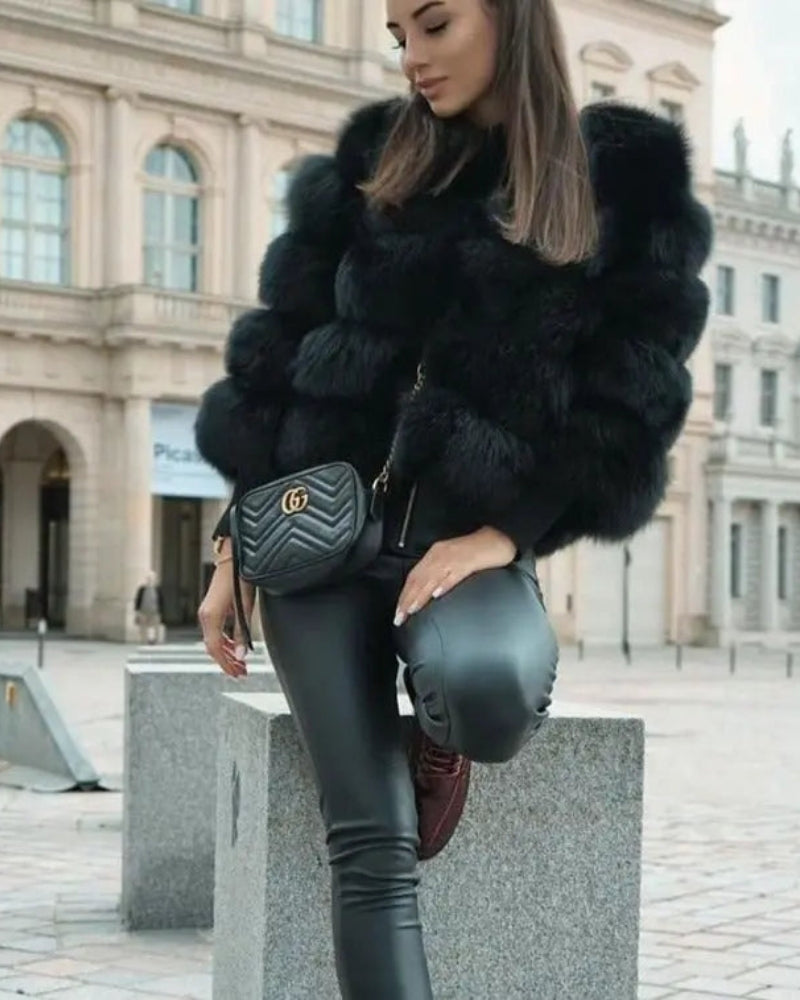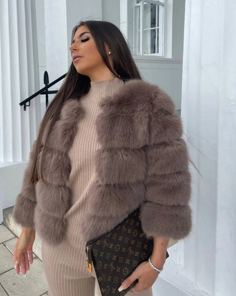 Kunstpelzmantel – Voluminöse lange Jacke für kaltes Wetter