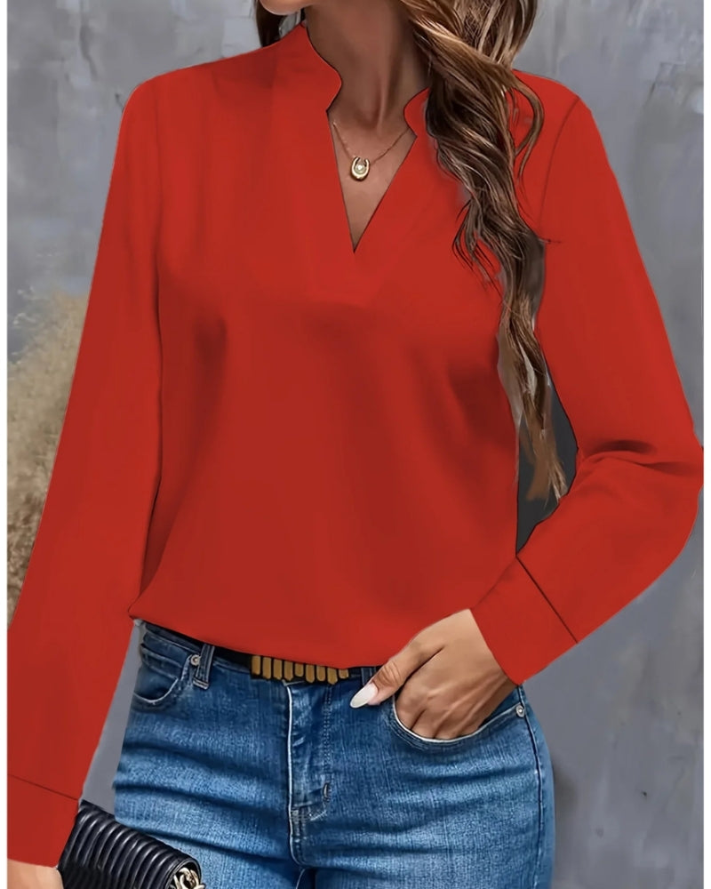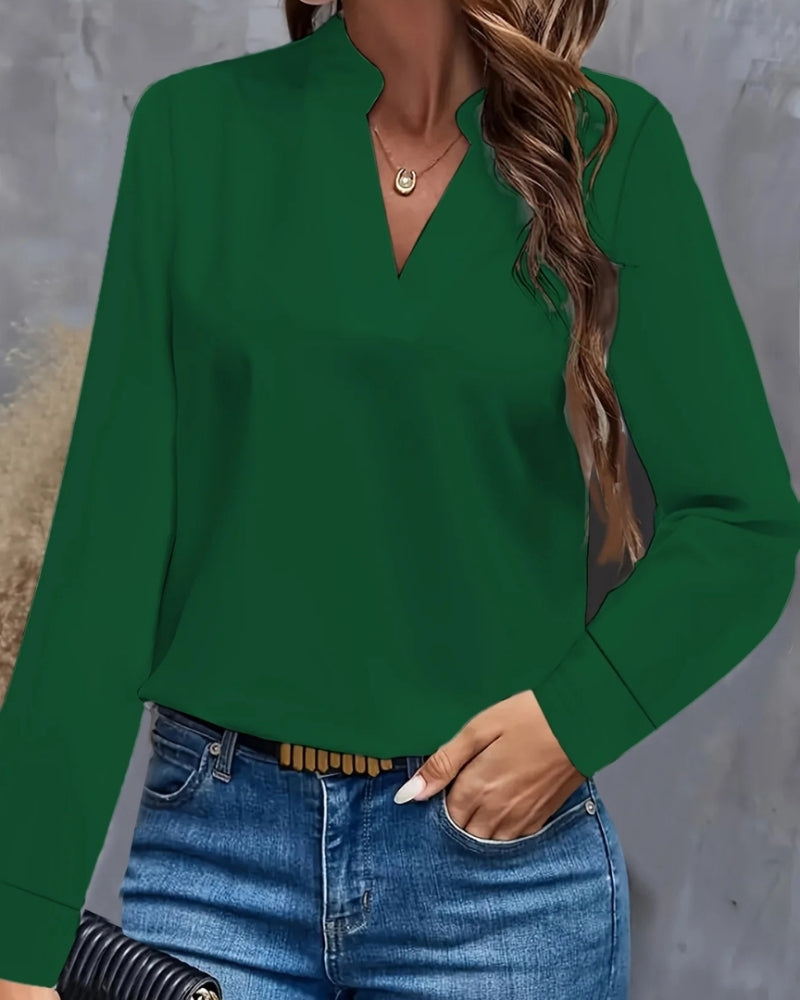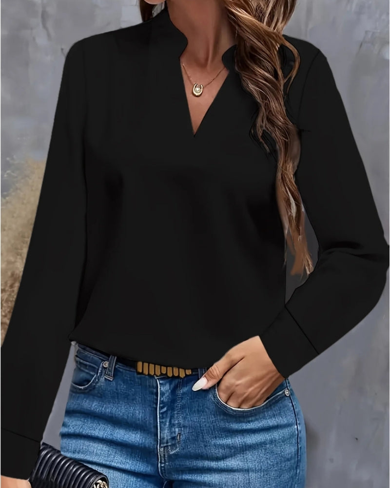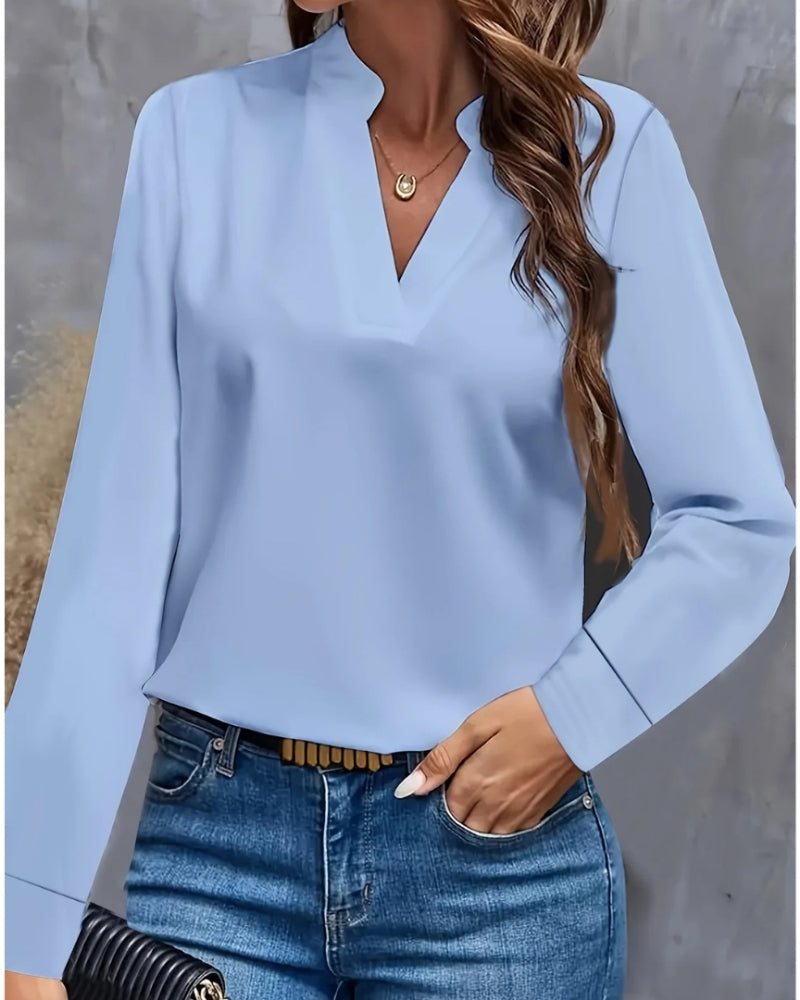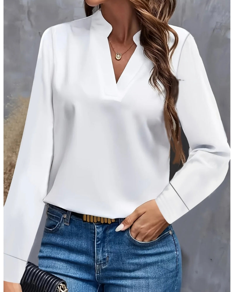 Langärmelige Damenbluse mit V-Ausschnitt – Bluse für Büro und formelle Kombinationen
