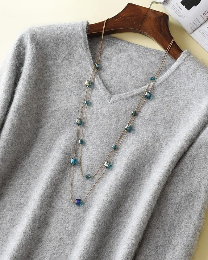 Pullover Damen 100% Mink Kaschmir – V-Ausschnitt Strickpullover für He – Tiger Mode Direkt zum Inhalt