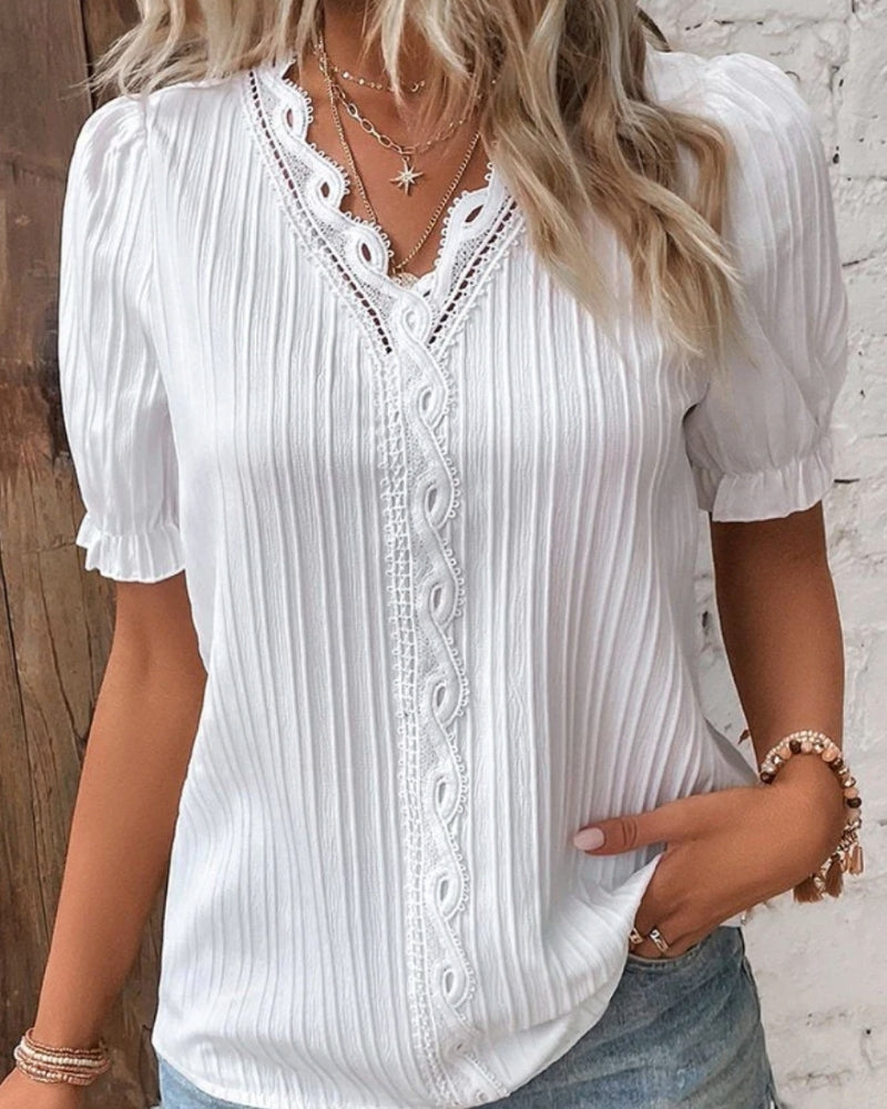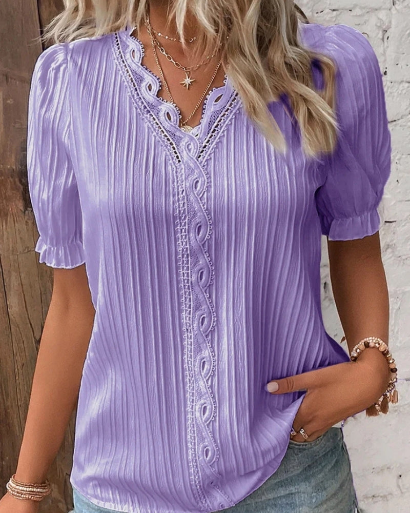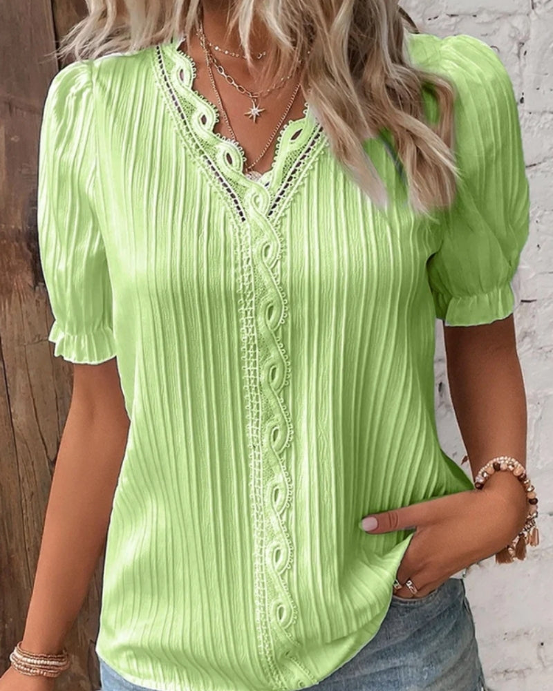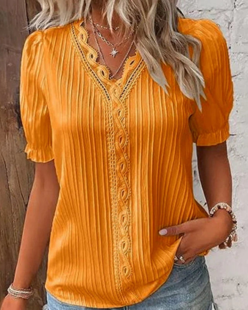 Strukturierte Damenbluse mit V-Ausschnitt – Bluse für Alltag und Kombinationen