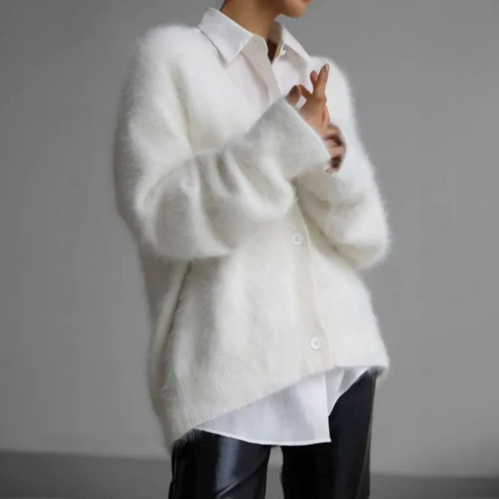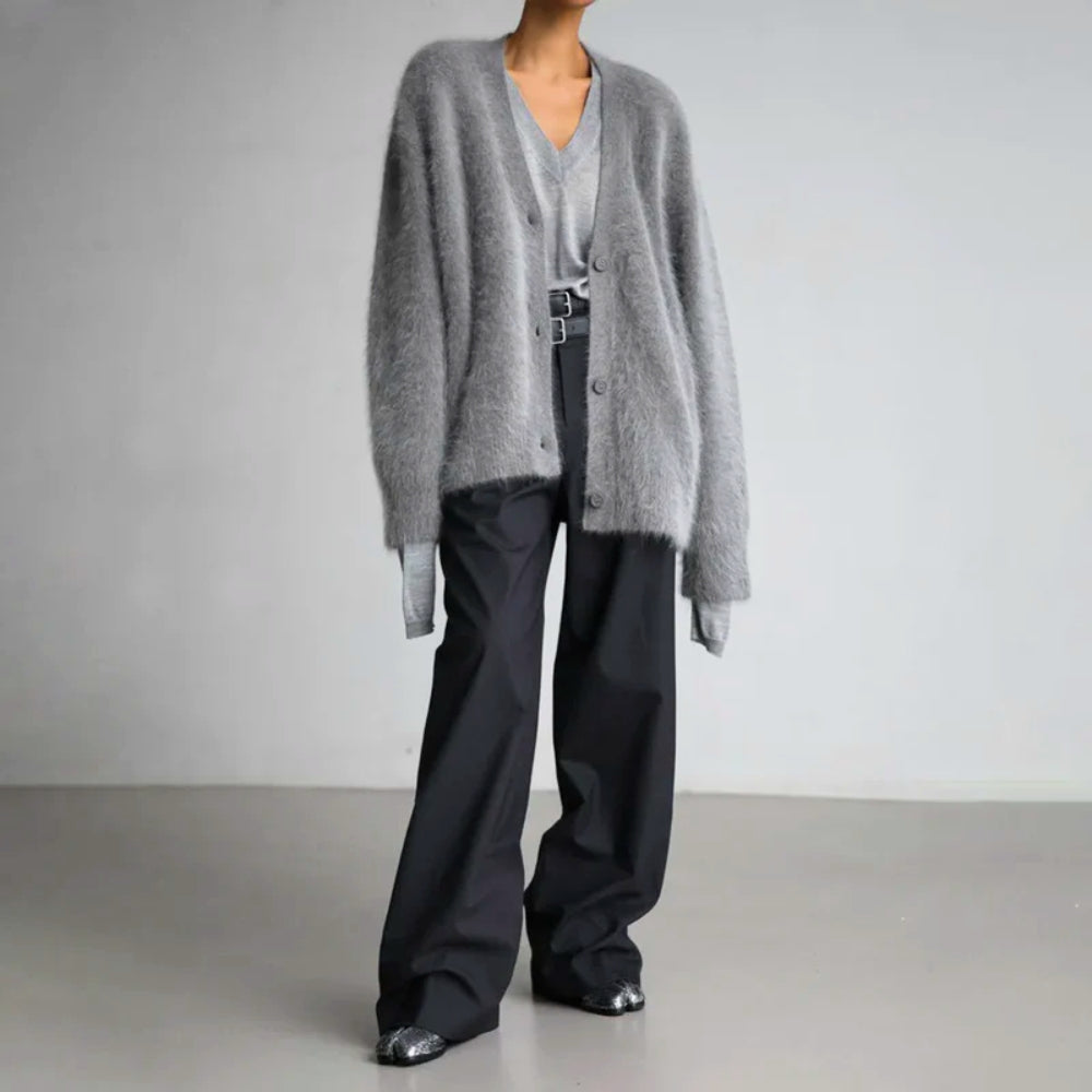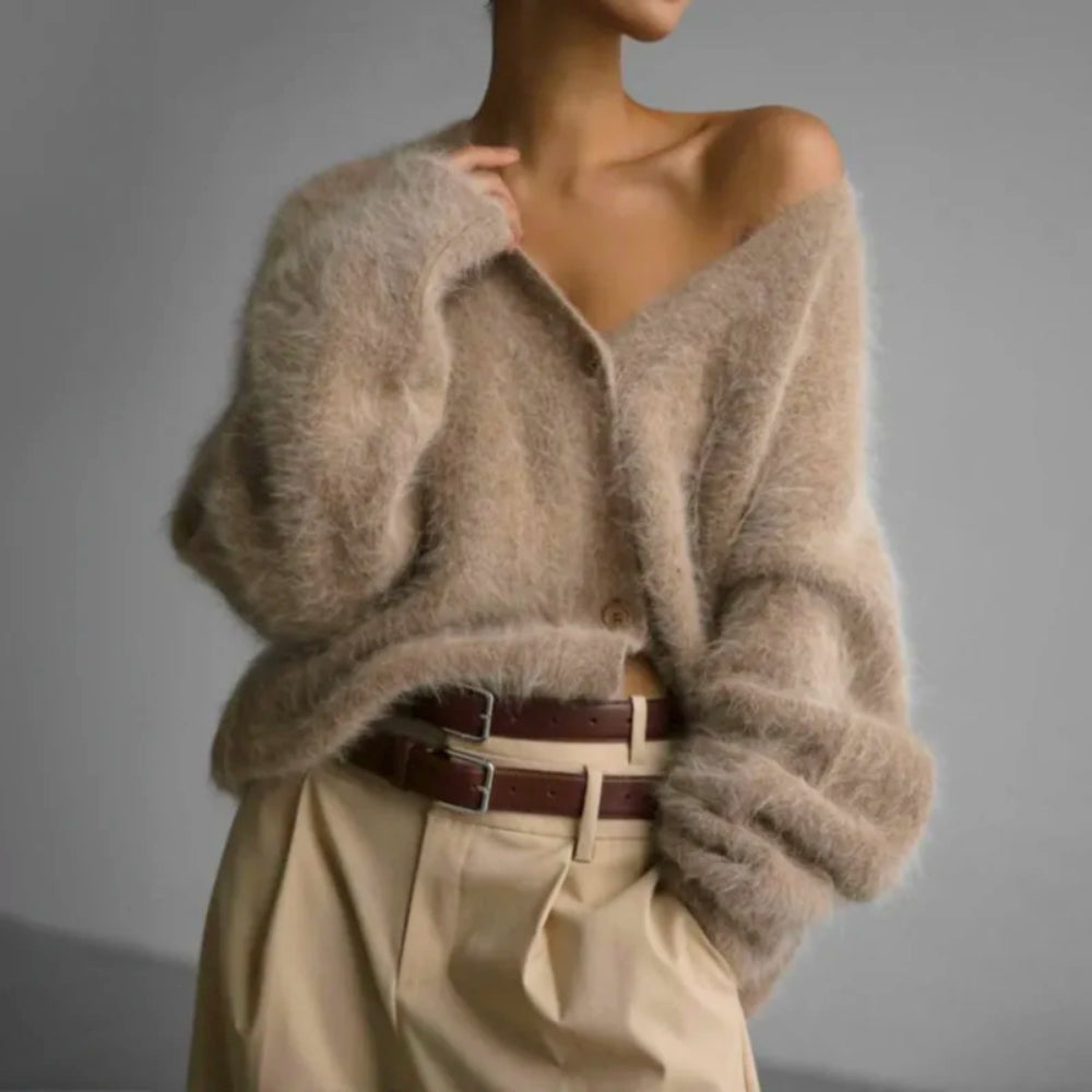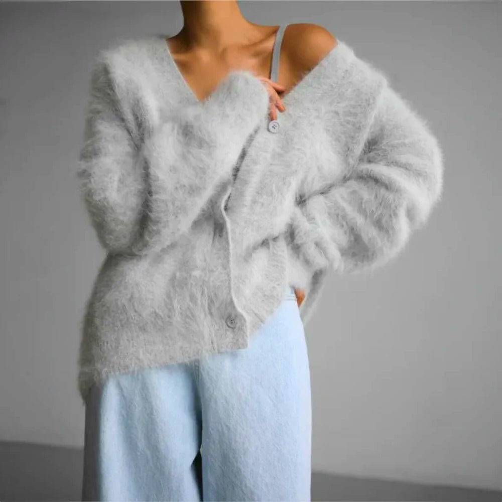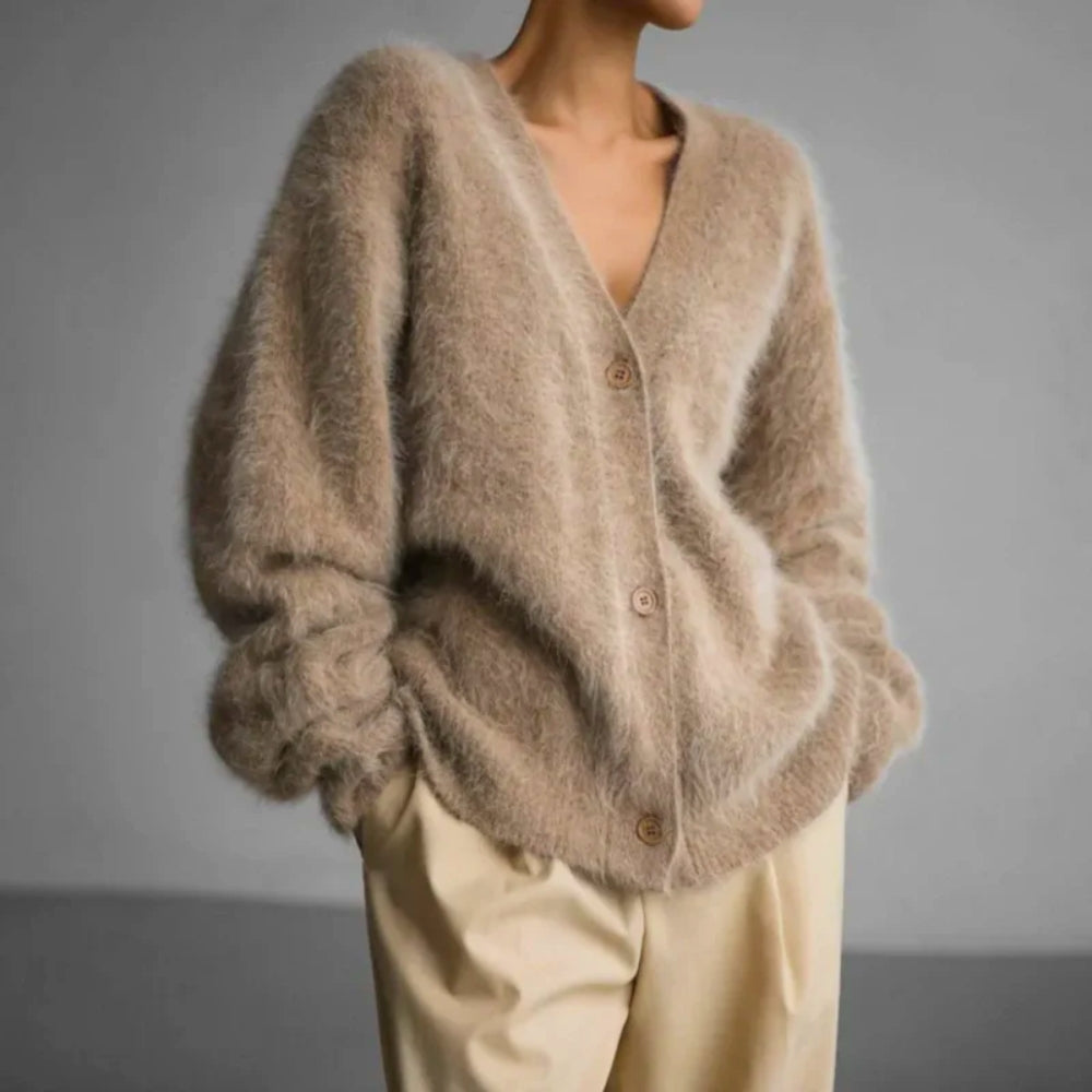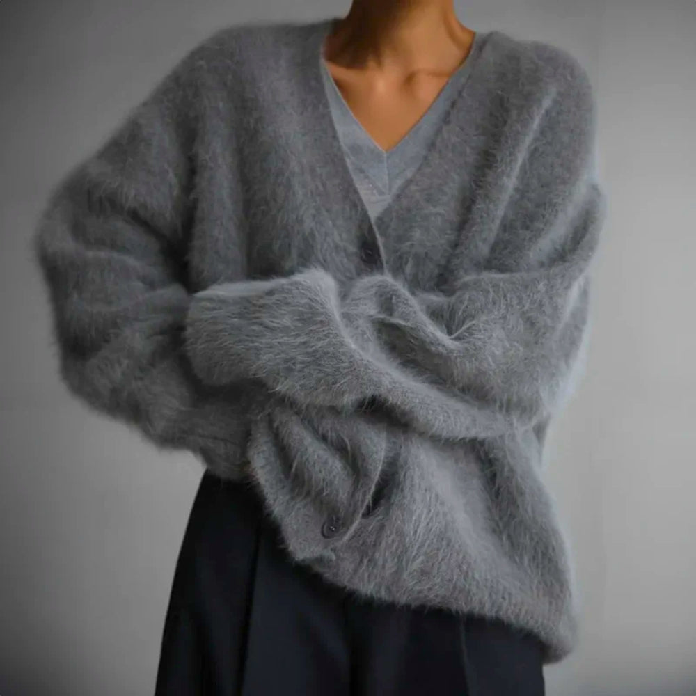 Übergroßer Strickjacke Damen - lockere Passform mit tiefem V-Ausschnitt