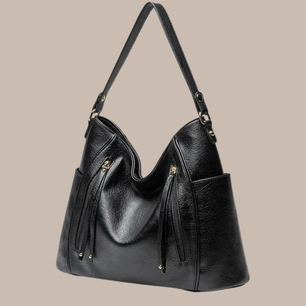 • Form: Weiche Schultertasche mit Reißverschlussfächern