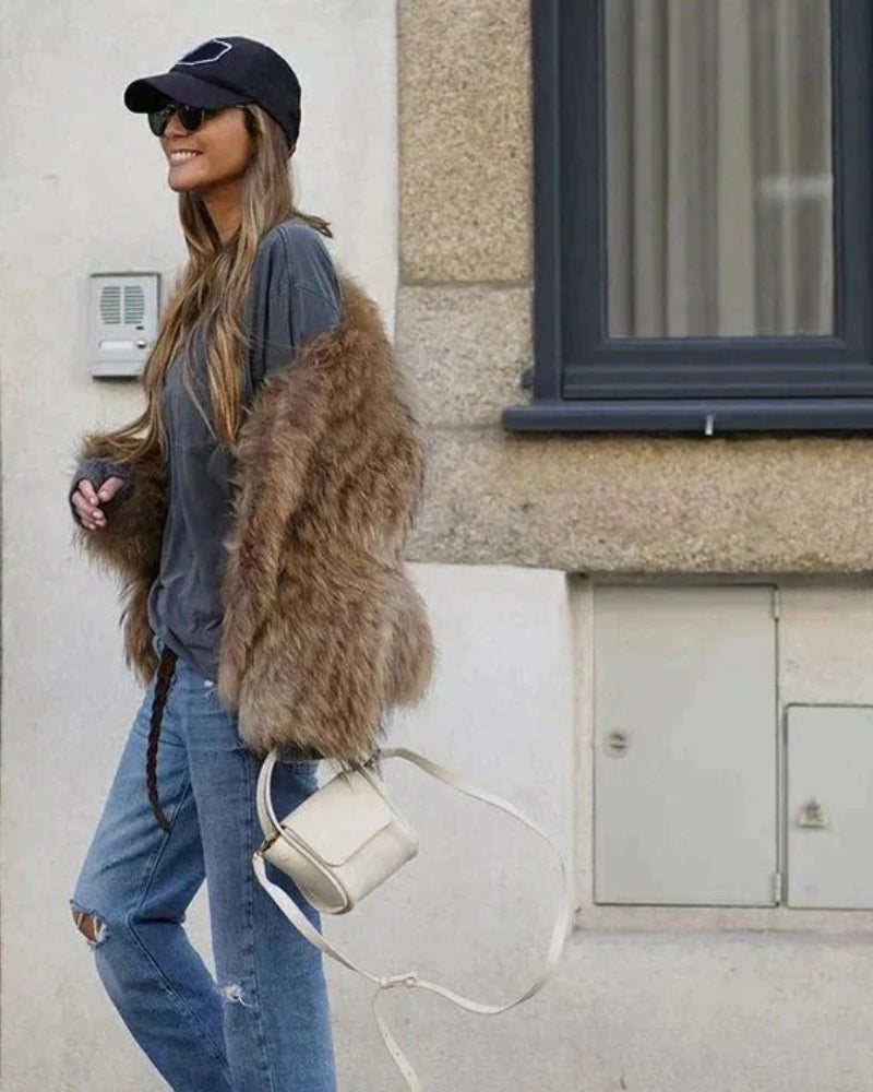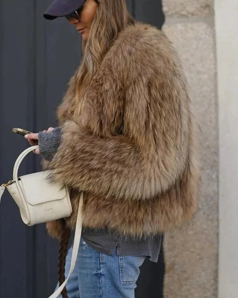 Winterjacke Damen – kurzer Kunstpelzmantel mit lockerer Passform