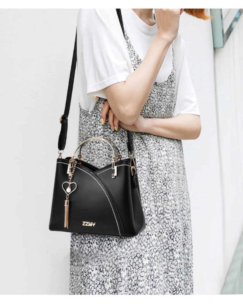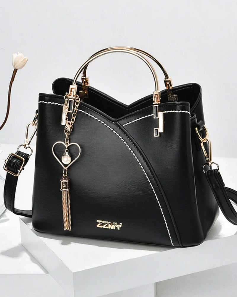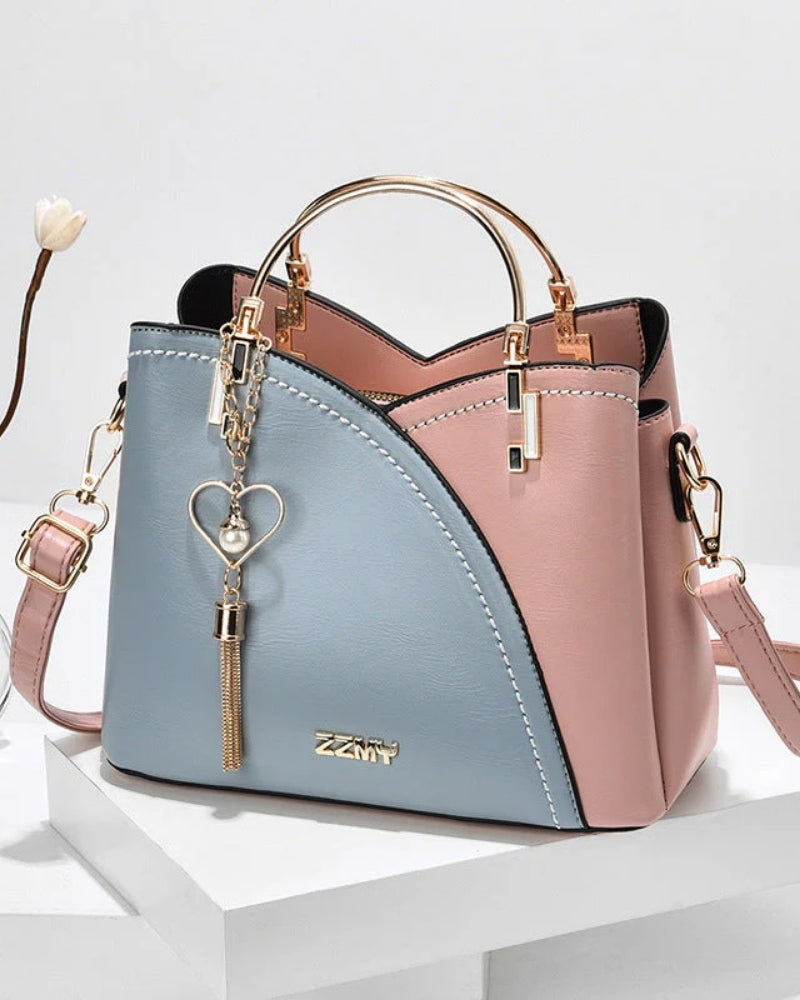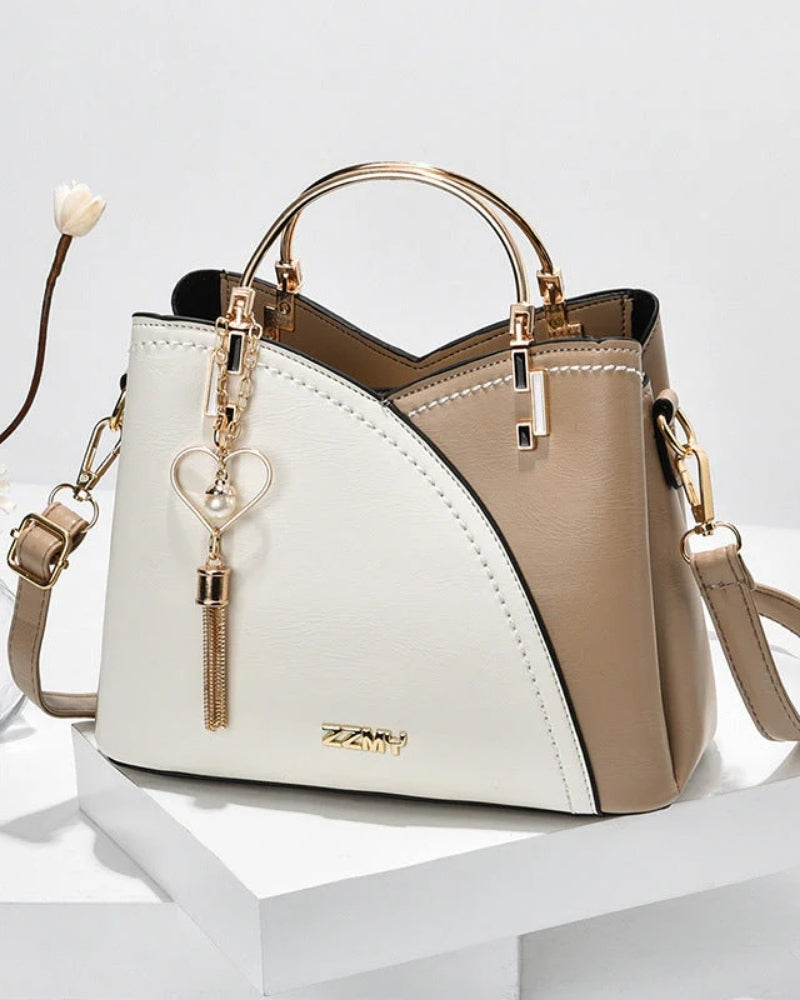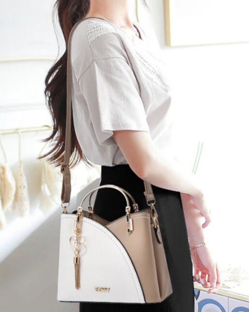 Zweifarbige Handtasche – Kompakte Umhängetasche mit abnehmbarem Riemen
